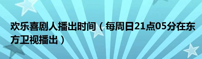 大家好,伊人來(lái)為大家解答以上問(wèn)題。歡樂(lè)喜劇人播出時(shí)間,每周日21點(diǎn)05分在東方衛(wèi)視播出很多人還不知道,現(xiàn)在讓我們一起來(lái)看看吧!