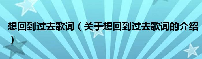 大家好,小新來為大家解答以上的問題。想回到過去歌詞,關(guān)于想回到過去歌詞的介紹很多人還不知道,現(xiàn)在讓我們一起來看看吧!