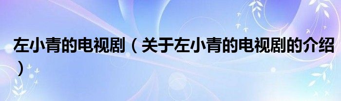 大家好,小新來為大家解答以上的問題。左小青的電視劇,關(guān)于左小青的電視劇的介紹很多人還不知道,現(xiàn)在讓我們一起來看看吧!