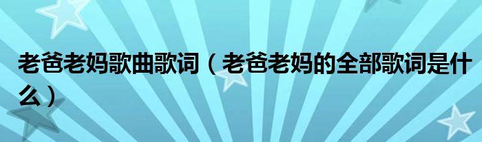 大家好,伊人來(lái)為大家解答以上問(wèn)題。老爸老媽歌曲歌詞,老爸老媽的全部歌詞是什么很多人還不知道,現(xiàn)在讓我們一起來(lái)看看吧!