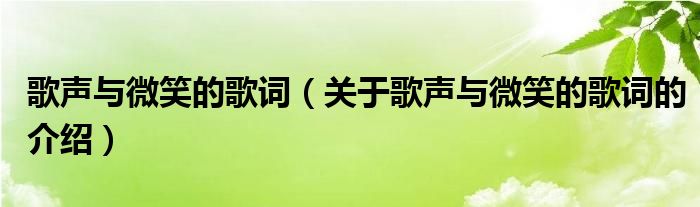大家好,小新來為大家解答以上的問題。歌聲與微笑的歌詞,關(guān)于歌聲與微笑的歌詞的介紹很多人還不知道,現(xiàn)在讓我們一起來看看吧!