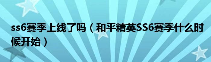 大家好,伊人來為大家解答以上問題。ss6賽季上線了嗎,和平精英SS6賽季什么時(shí)候開始很多人還不知道,現(xiàn)在讓我們一起來看看吧!