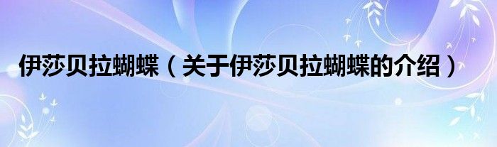 大家好,小新來為大家解答以上的問題。伊莎貝拉蝴蝶,關(guān)于伊莎貝拉蝴蝶的介紹很多人還不知道,現(xiàn)在讓我們一起來看看吧!