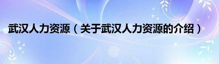 大家好,小新來為大家解答以上的問題。武漢人力資源,關于武漢人力資源的介紹很多人還不知道,現在讓我們一起來看看吧!