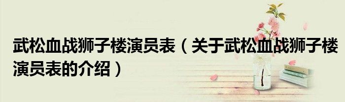 大家好,小新來為大家解答以上的問題。武松血戰(zhàn)獅子樓演員表,關(guān)于武松血戰(zhàn)獅子樓演員表的介紹很多人還不知道,現(xiàn)在讓我們一起來看看吧!