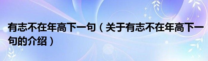 大家好,小新來(lái)為大家解答以上的問(wèn)題。有志不在年高下一句,關(guān)于有志不在年高下一句的介紹很多人還不知道,現(xiàn)在讓我們一起來(lái)看看吧!
