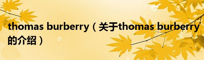 大家好,小新來為大家解答以上的問題。thomas burberry,關(guān)于thomas burberry的介紹很多人還不知道,現(xiàn)在讓我們一起來看看吧!