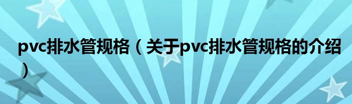 大家好,小新來為大家解答以上的問題。pvc排水管規(guī)格,關(guān)于pvc排水管規(guī)格的介紹很多人還不知道,現(xiàn)在讓我們一起來看看吧!