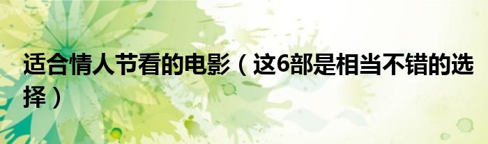 大家好,伊人來為大家解答以上問題。適合情人節(jié)看的電影,這6部是相當(dāng)不錯的選擇很多人還不知道,現(xiàn)在讓我們一起來看看吧!