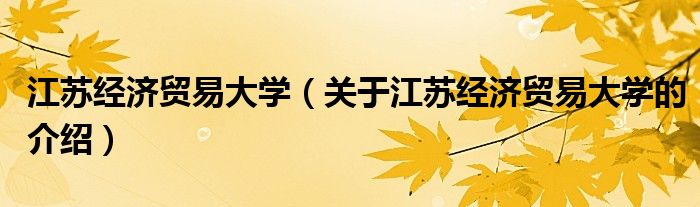 大家好,小新來為大家解答以上的問題。江蘇經(jīng)濟貿(mào)易大學,關(guān)于江蘇經(jīng)濟貿(mào)易大學的介紹很多人還不知道,現(xiàn)在讓我們一起來看看吧!