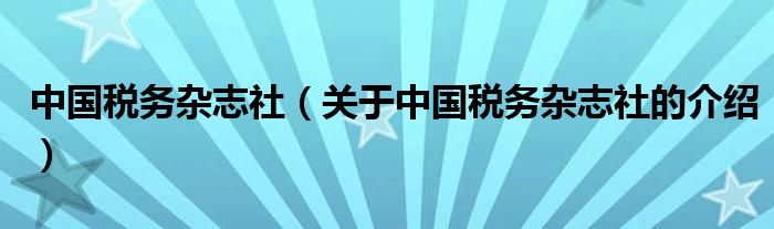 1、中國稅務(wù)雜志社成立于1988年,是國家稅務(wù)總局直屬事業(yè)單位,主要負(fù)責(zé)《中國稅務(wù)》《稅務(wù)研究》《國際稅收》的編輯、出版、發(fā)行、廣告工作。