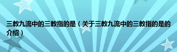 大家好,小新來(lái)為大家解答以上的問(wèn)題。三教九流中的三教指的是,關(guān)于三教九流中的三教指的是的介紹很多人還不知道,現(xiàn)在讓我們一起來(lái)看看吧!