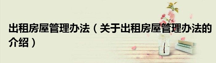 大家好,小新來為大家解答以上的問題。出租房屋管理辦法,關(guān)于出租房屋管理辦法的介紹很多人還不知道,現(xiàn)在讓我們一起來看看吧!