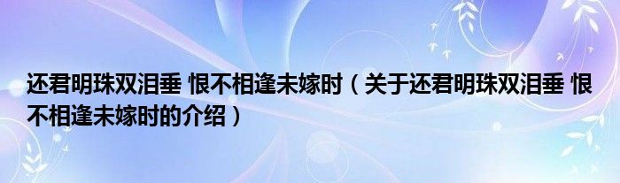 大家好,小新來為大家解答以上的問題。還君明珠雙淚垂 恨不相逢未嫁時,關于還君明珠雙淚垂 恨不相逢未嫁時的介紹很多人還不知道,現(xiàn)在讓我們一起來看看吧!