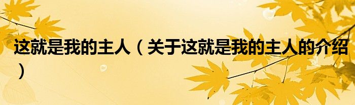 大家好,小新來為大家解答以上的問題。這就是我的主人,關(guān)于這就是我的主人的介紹很多人還不知道,現(xiàn)在讓我們一起來看看吧!