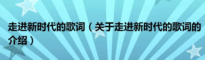 大家好,小新來為大家解答以上的問題。走進(jìn)新時(shí)代的歌詞,關(guān)于走進(jìn)新時(shí)代的歌詞的介紹很多人還不知道,現(xiàn)在讓我們一起來看看吧!