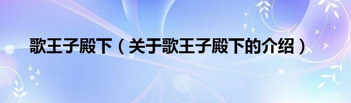 大家好,小新來為大家解答以上的問題。歌王子殿下,關(guān)于歌王子殿下的介紹很多人還不知道,現(xiàn)在讓我們一起來看看吧!