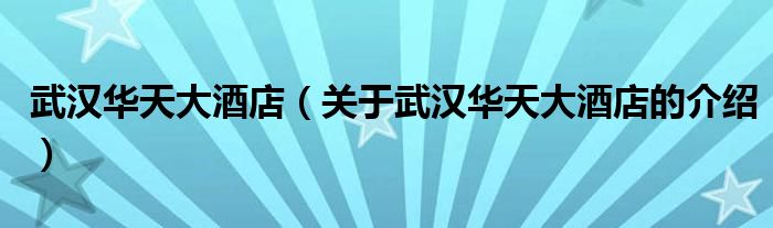 大家好,小新來為大家解答以上的問題。武漢華天大酒店,關(guān)于武漢華天大酒店的介紹很多人還不知道,現(xiàn)在讓我們一起來看看吧!