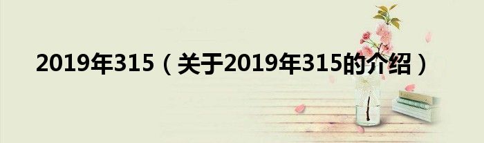 大家好,小新來為大家解答以上的問題。2019年315,關(guān)于2019年315的介紹很多人還不知道,現(xiàn)在讓我們一起來看看吧!