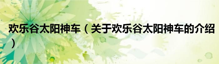 大家好,小新來為大家解答以上的問題。歡樂谷太陽神車,關(guān)于歡樂谷太陽神車的介紹很多人還不知道,現(xiàn)在讓我們一起來看看吧!