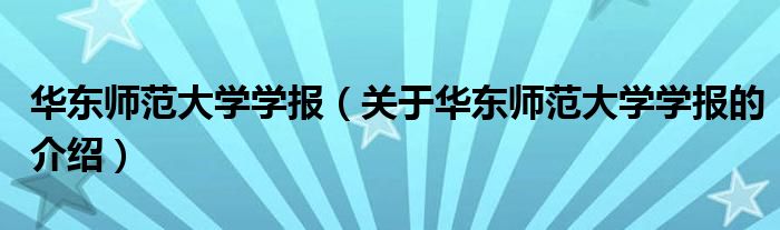 大家好,小新來為大家解答以上的問題。華東師范大學(xué)學(xué)報,關(guān)于華東師范大學(xué)學(xué)報的介紹很多人還不知道,現(xiàn)在讓我們一起來看看吧!