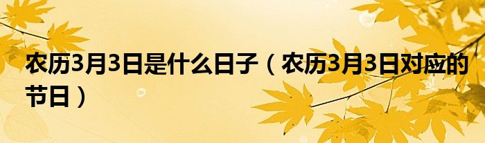 大家好,伊人來為大家解答以上問題。農(nóng)歷3月3日是什么日子,農(nóng)歷3月3日對應(yīng)的節(jié)日很多人還不知道,現(xiàn)在讓我們一起來看看吧!