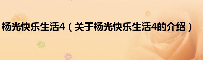 大家好,小新來為大家解答以上的問題。楊光快樂生活4,關(guān)于楊光快樂生活4的介紹很多人還不知道,現(xiàn)在讓我們一起來看看吧!