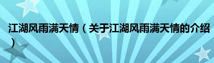 大家好,小新來為大家解答以上的問題。江湖風(fēng)雨滿天情,關(guān)于江湖風(fēng)雨滿天情的介紹很多人還不知道,現(xiàn)在讓我們一起來看看吧!