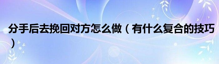 大家好,伊人來為大家解答以上問題。分手后去挽回對方怎么做,有什么復(fù)合的技巧很多人還不知道,現(xiàn)在讓我們一起來看看吧!