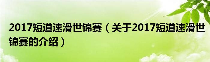 大家好,小新來為大家解答以上的問題。2017短道速滑世錦賽,關于2017短道速滑世錦賽的介紹很多人還不知道,現(xiàn)在讓我們一起來看看吧!