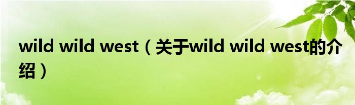 大家好,小新來為大家解答以上的問題。wild wild west,關(guān)于wild wild west的介紹很多人還不知道,現(xiàn)在讓我們一起來看看吧!