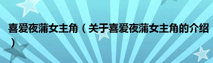 大家好,小新來為大家解答以上的問題。喜愛夜蒲女主角,關(guān)于喜愛夜蒲女主角的介紹很多人還不知道,現(xiàn)在讓我們一起來看看吧!