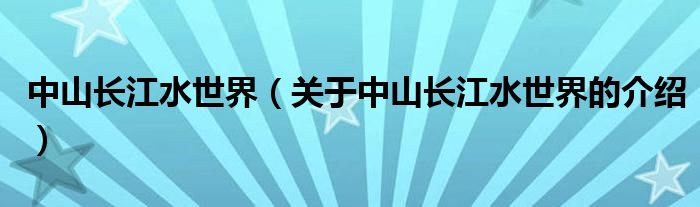 大家好,小新來為大家解答以上的問題。中山長江水世界,關于中山長江水世界的介紹很多人還不知道,現在讓我們一起來看看吧!