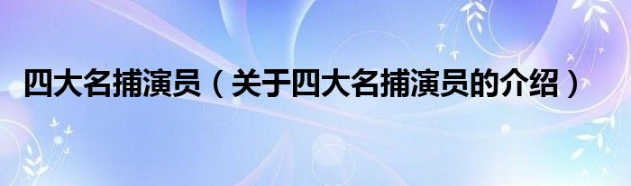 大家好,小新來為大家解答以上的問題。四大名捕演員,關(guān)于四大名捕演員的介紹很多人還不知道,現(xiàn)在讓我們一起來看看吧!