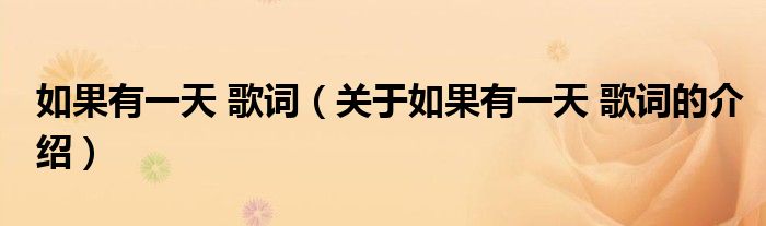 大家好,小新來為大家解答以上的問題。如果有一天 歌詞,關(guān)于如果有一天 歌詞的介紹很多人還不知道,現(xiàn)在讓我們一起來看看吧!
