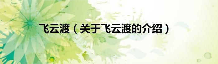 大家好,小新來為大家解答以上的問題。飛云渡,關(guān)于飛云渡的介紹很多人還不知道,現(xiàn)在讓我們一起來看看吧!