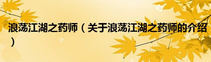 大家好,小新來為大家解答以上的問題。浪蕩江湖之藥師,關(guān)于浪蕩江湖之藥師的介紹很多人還不知道,現(xiàn)在讓我們一起來看看吧!