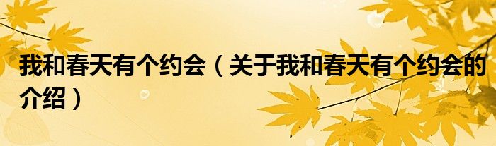 大家好,小新來為大家解答以上的問題。我和春天有個約會,關(guān)于我和春天有個約會的介紹很多人還不知道,現(xiàn)在讓我們一起來看看吧!