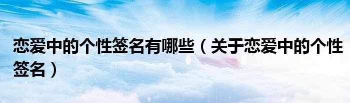 大家好,伊人來(lái)為大家解答以上問(wèn)題。戀愛中的個(gè)性簽名有哪些,關(guān)于戀愛中的個(gè)性簽名很多人還不知道,現(xiàn)在讓我們一起來(lái)看看吧!