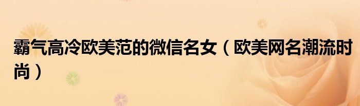 大家好,伊人來為大家解答以上問題。霸氣高冷歐美范的微信名女,歐美網名潮流時尚很多人還不知道,現(xiàn)在讓我們一起來看看吧!