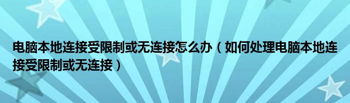 大家好,伊人來為大家解答以上問題。電腦本地連接受限制或無連接怎么辦,如何處理電腦本地連接受限制或無連接很多人還不知道,現(xiàn)在讓我們一起來看看吧!