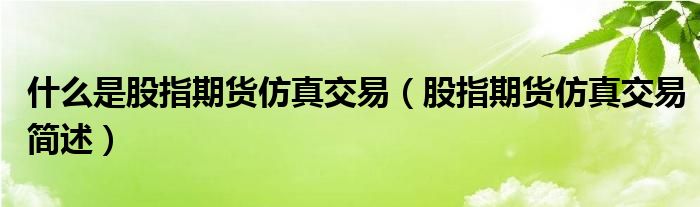 大家好,伊人來為大家解答以上問題。什么是股指期貨仿真交易,股指期貨仿真交易簡述很多人還不知道,現(xiàn)在讓我們一起來看看吧!