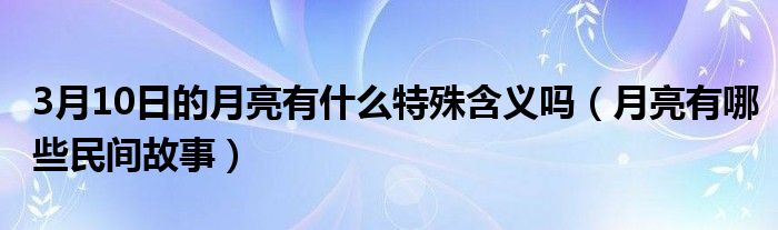 大家好,伊人來為大家解答以上問題。3月10日的月亮有什么特殊含義嗎,月亮有哪些民間故事很多人還不知道,現(xiàn)在讓我們一起來看看吧!