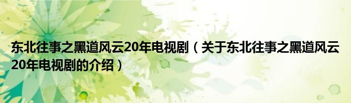 大家好,小新來為大家解答以上的問題。東北往事之黑道風(fēng)云20年電視劇,關(guān)于東北往事之黑道風(fēng)云20年電視劇的介紹很多人還不知道,現(xiàn)在讓我們一起來看看吧!