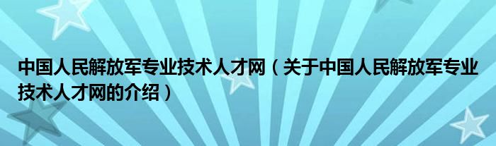 大家好,小新來為大家解答以上的問題。中國人民解放軍專業(yè)技術(shù)人才網(wǎng),關(guān)于中國人民解放軍專業(yè)技術(shù)人才網(wǎng)的介紹很多人還不知道,現(xiàn)在讓我們一起來看看吧!