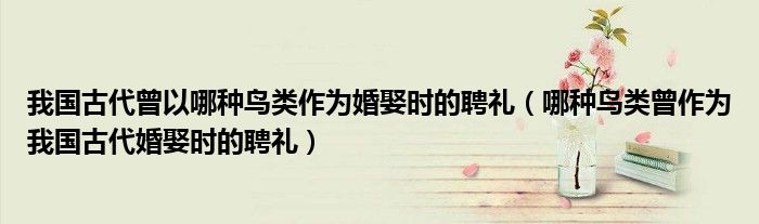 大家好,伊人來(lái)為大家解答以上問(wèn)題。我國(guó)古代曾以哪種鳥類作為婚娶時(shí)的聘禮,哪種鳥類曾作為我國(guó)古代婚娶時(shí)的聘禮很多人還不知道,現(xiàn)在讓我們一起來(lái)看看吧!