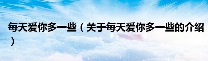 大家好,小新來為大家解答以上的問題。每天愛你多一些,關(guān)于每天愛你多一些的介紹很多人還不知道,現(xiàn)在讓我們一起來看看吧!