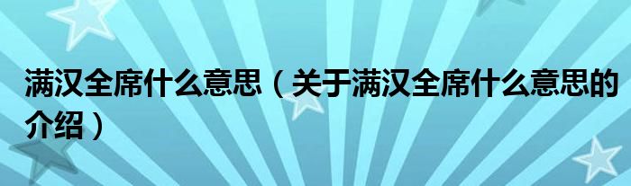 大家好,小新來為大家解答以上的問題。滿漢全席什么意思,關(guān)于滿漢全席什么意思的介紹很多人還不知道,現(xiàn)在讓我們一起來看看吧!