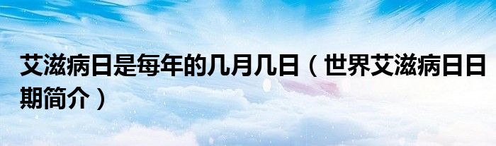 大家好,伊人來為大家解答以上問題。艾滋病日是每年的幾月幾日,世界艾滋病日日期簡介很多人還不知道,現(xiàn)在讓我們一起來看看吧!