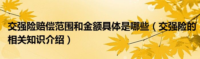 大家好,伊人來為大家解答以上問題。交強(qiáng)險(xiǎn)賠償范圍和金額具體是哪些,交強(qiáng)險(xiǎn)的相關(guān)知識(shí)介紹很多人還不知道,現(xiàn)在讓我們一起來看看吧!